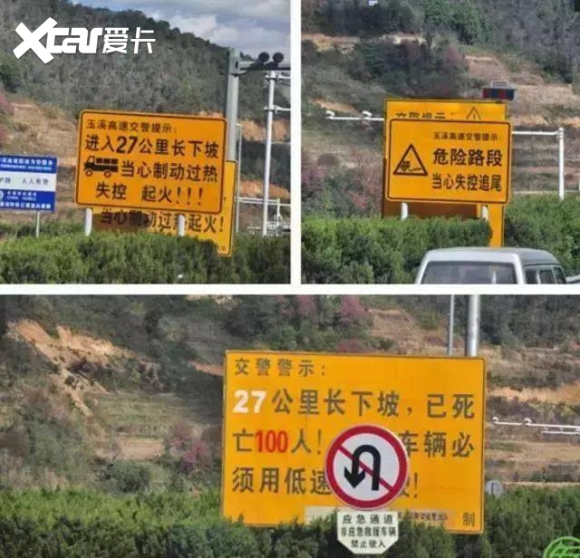 先来看看这段路的简介:27公里,海拔落差1010米,最大斜度6,自救匝道5个,加水站2个,建成以来有超越1000辆车在此烧毁,100多人逝世。
