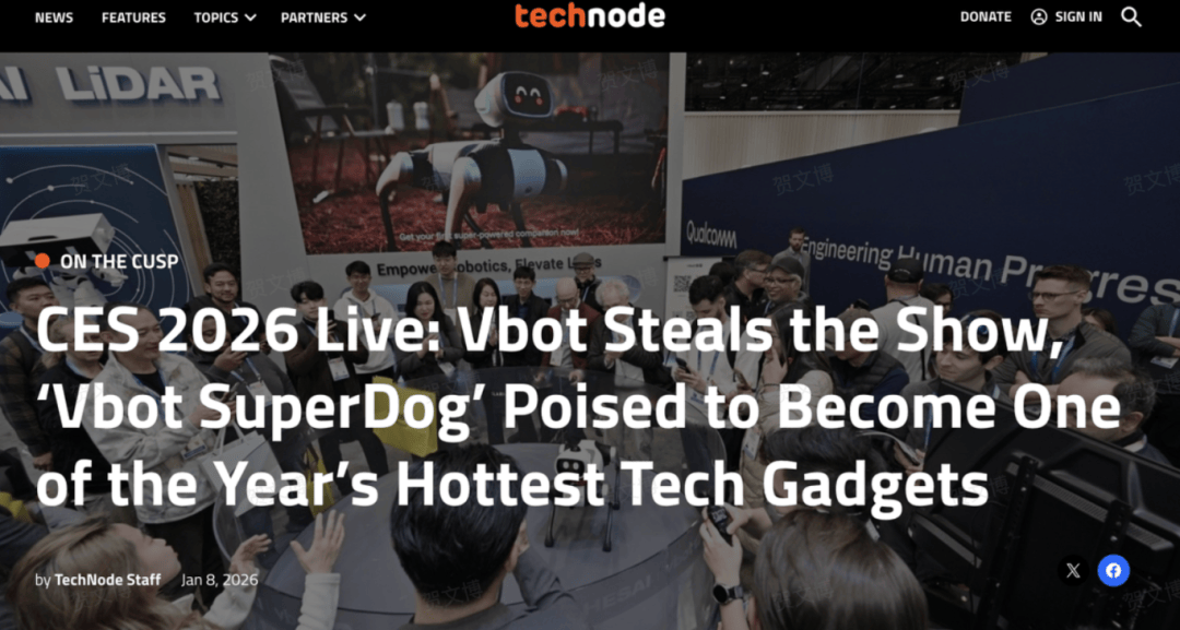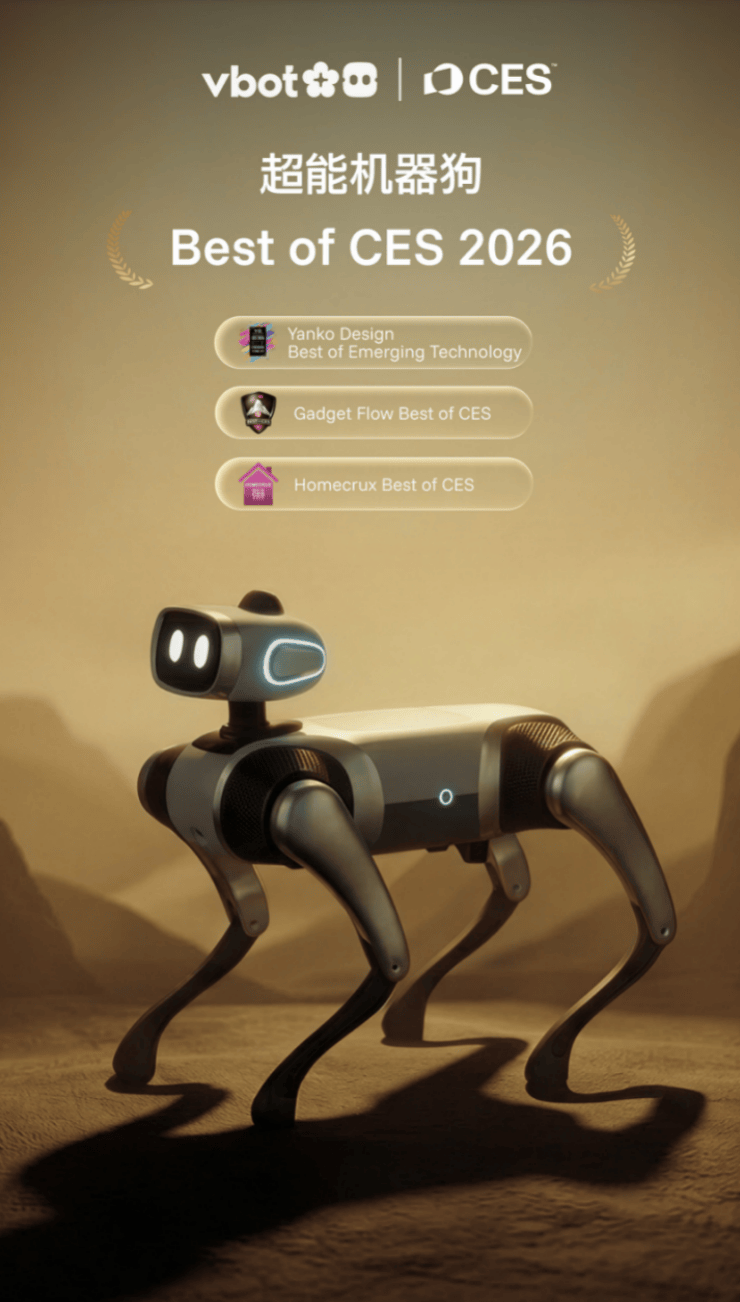 国际市场的反馈也印证了其产品力。在欧美,独栋住宅普遍,户外空间充足,一台能自主跟随、负重、巡检的机器狗,可能比扫地机器人更实用。Vbot在CES上的爆火,正是因为它解决了真实痛点——安全、可靠、能干活,并且具有情感上的亲和力。Vbot超能机器狗凭借其出色表现,获得了《财富》、Design Magazine、TechNode等国际权威媒体的密集报道,并赢得了Best of CES在内的多项权威认可。其中,国际设计与生活方式类媒体Homecrux更是评价到:“Vbot让机器人第一次真正像家庭成员一样走进日常生活。”